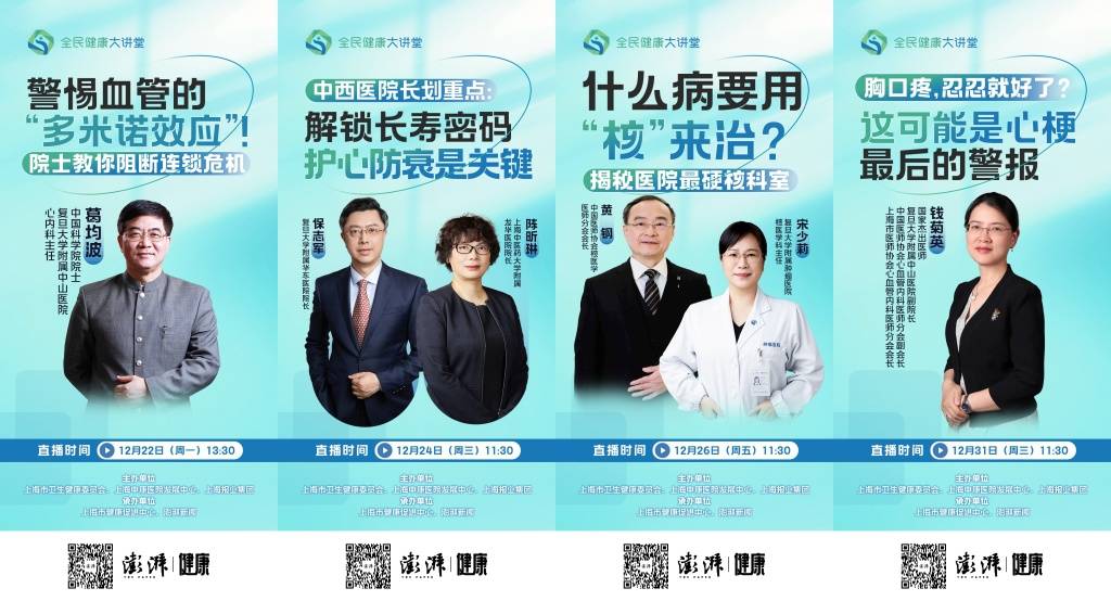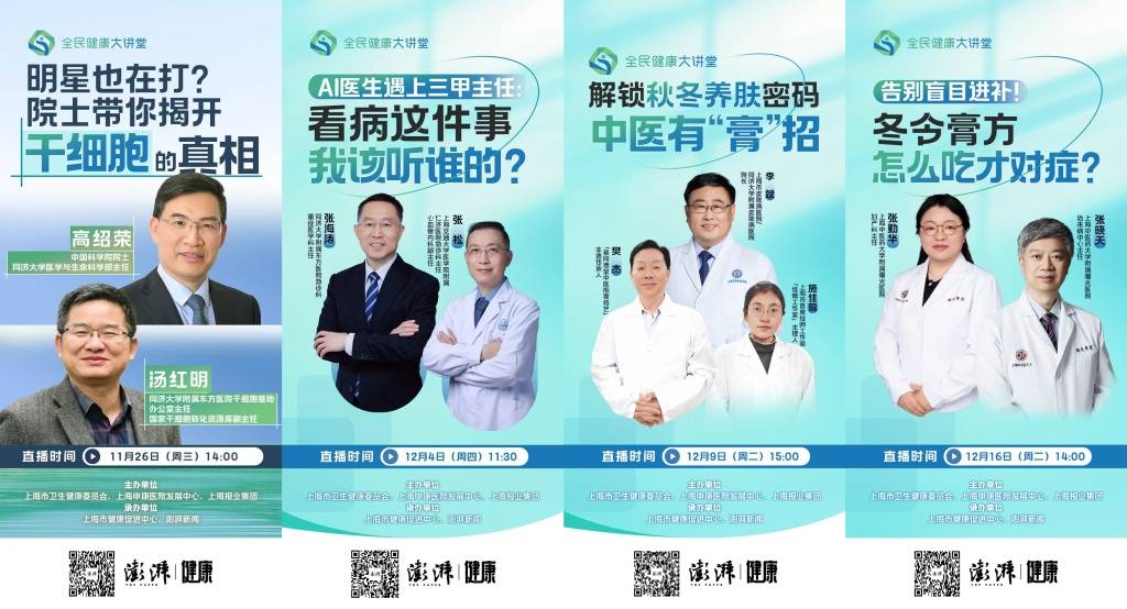 具体专场中,中国工程院院士、上海市糖尿病研究所所长、上海交通大学主动健康战略与发展研究院院长作为首讲嘉宾,深入浅出阐释科学体重管理的核心逻辑与实践方法;中国科学院院士、同济大学医学与生命科学部主任聚焦干细胞技术,为公众厘清“返老还童”的认知误区,解读前沿技术的应用边界;中国科学院院士、复旦大学附属中山医院心内科主任以“生命高速公路网”为生动喻体,通俗解读泛血管医学理念,点明心梗、脑梗等病症的根源在于血管系统的整体性病变。