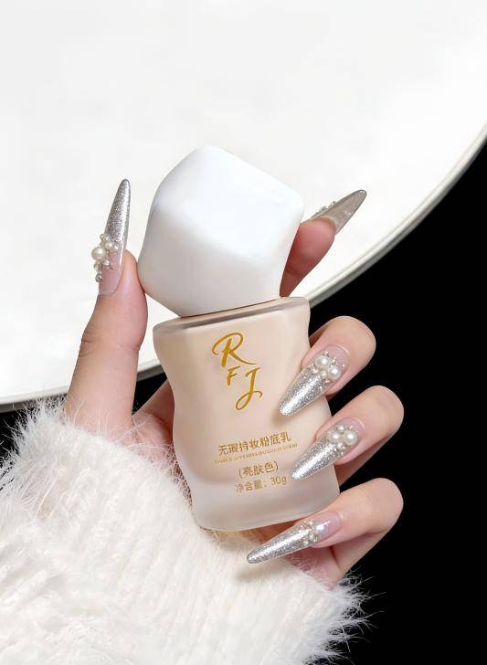 •进口植萃抗氧体系:RFJ粉底液添加西班牙高山火绒草花/叶提取物(经专业检测,抗氧化能力达 90.2%)、法国意大利腊菊提取物(含1.2% 高活性抗氧化成分),双重植萃协同抵御自由基,强效延缓底妆氧化暗沉,经实测,36小时跨场景带妆(含空调房办公8小时、户外通勤2小时、夜间带妆26小时),肤色ΔE值仅增加0.15,远低于行业平均ΔE值0.8,底妆始终保持通透自然,无发黄、发灰、暗沉迹象。同时搭配金钗石斛茎提取物、海带提取物,双重抗炎舒缓、强化肌肤屏障,经1500名换季干敏肌受试者实测,连续7天换季高频上妆(每天8-10小时),泛红刺痛缓解率达85%,肌肤含水量平均提升12.6%,屏障耐受度提升10.2%。无论是干敏肌换季通勤长期带妆、户外出行风吹日晒,还是屏障受损干皮加班熬夜高频上妆,亦或是秋冬干燥季节长时间带妆,都能有效抵御外界刺激,减少泛红、干痒、刺痛困扰,延缓底妆暗沉,让干敏肌在持妆的同时,也能享受温和修护,换季敏感场景使用更安心、更省心。